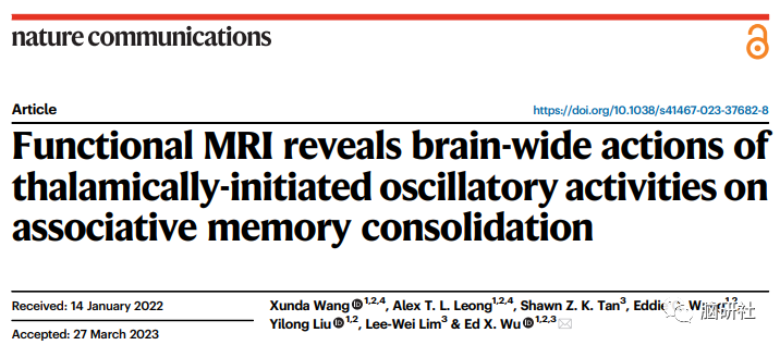 2023年4月17日,香港大学的吴学奎教授及其研究团队在Nature Communications(IF=16.6)上发表了题为“Functional MRI reveals brain-wide actions of thalamically-initiated