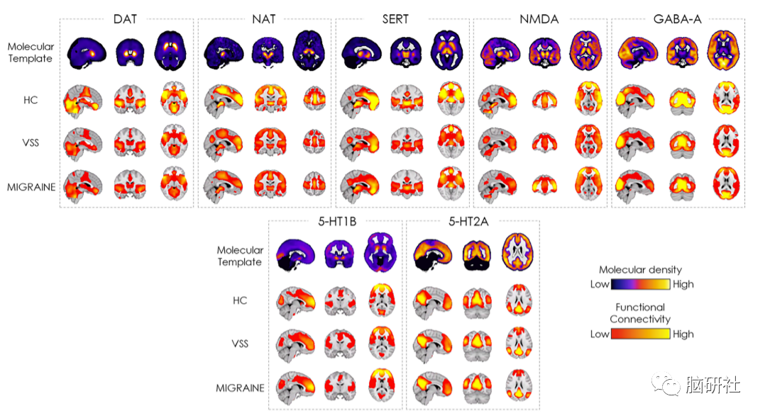 研究人员采用了24名视雪综合症(VSS)患者,25名偏头痛患者和24名没有VSS或偏头痛病史的健康人的现有扫描数据。使用一种多模态分析的新方法(Receptor-Enriched Analysis of Functional Connectivity by Targets,REACT),其结合了PET成像的信息和大脑不同区域之间活动相互作用的功能磁共振成像(fMRI)的信息。