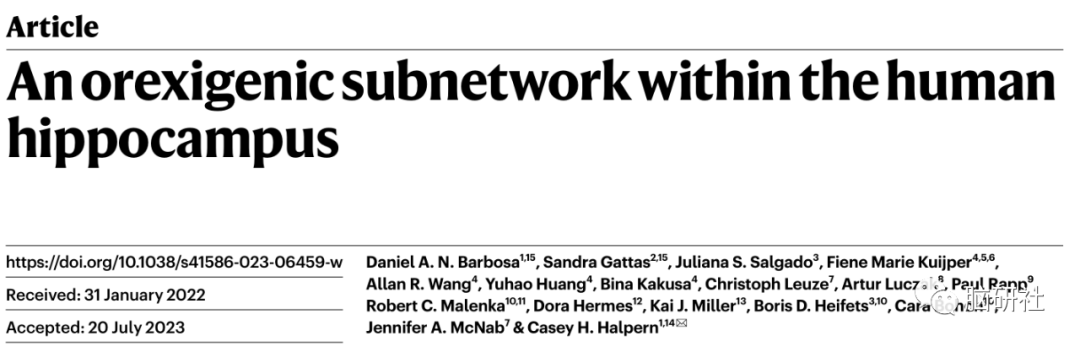 2023年8月30日,宾夕法尼亚大学的Daniel A. N. Barbosa博士和加利福尼亚大学的Sandra Gattas及其研究团队在Nature(IF=64.8)上发表了题为“An orexigenic subnetwork within the human hippocampus”的文章,研究通过对一个饮食行为失调的人群进行的结构和功能分析表明,大脑回路的连接与身体质量指数呈负相关,同时也描述了人类一个与肥胖和饮食失调相关的海马体区域促食欲的子网络。