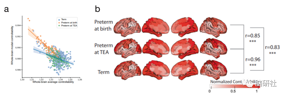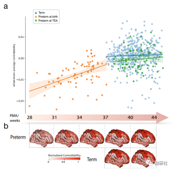 虽然足月婴儿和早产儿具有相似的可控性模式,但两组婴儿在个体大脑区域内的可控性程度不同。许多在可控性方面差异最大的大脑区域是在早产儿童中观察到的,包括与语言发展和社会处理有关的大脑区域。然而,研究人员还发现,早产儿能够“赶上”足月出生的同龄人,在出生后的头几个月里,表现出更快的区域控制力发展。