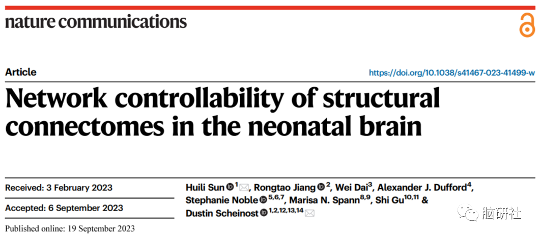 Sun H, Jiang R, Dai W, Dufford AJ, Noble S, Spann MN, Gu S, Scheinost D. Network controllability of structural connectomes in the neonatal brain. Nat Commun. 2023 Sep 19;14(1):5820. doi: 10.1038/s41467-023-41499-w资讯来源