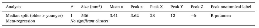 我们检验了50个实验中fMRI激活模式与年龄相关的变化(a)通过将实验样本在(平均)样本年龄的中位数(md平均年龄=10.3岁)处一分为二,并执行如上所述的ALE减法分析(见第2.4节),以及(b)通过将平均样本年龄作为一个线性预测变量输入到使用基于效应量的SDM方法的元回归模型中(见第2.3节)。