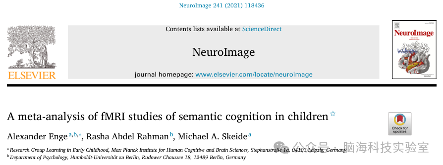 Enge A, Abdel Rahman R, Skeide MA. A meta-analysis of fMRI studies of semantic cognition in children. Neuroimage. 2021 Nov 1;241:118436. doi: 10.1016/j.neuroimage.2021.118436. Epub 2021 Jul 28. PMID: 34329724.