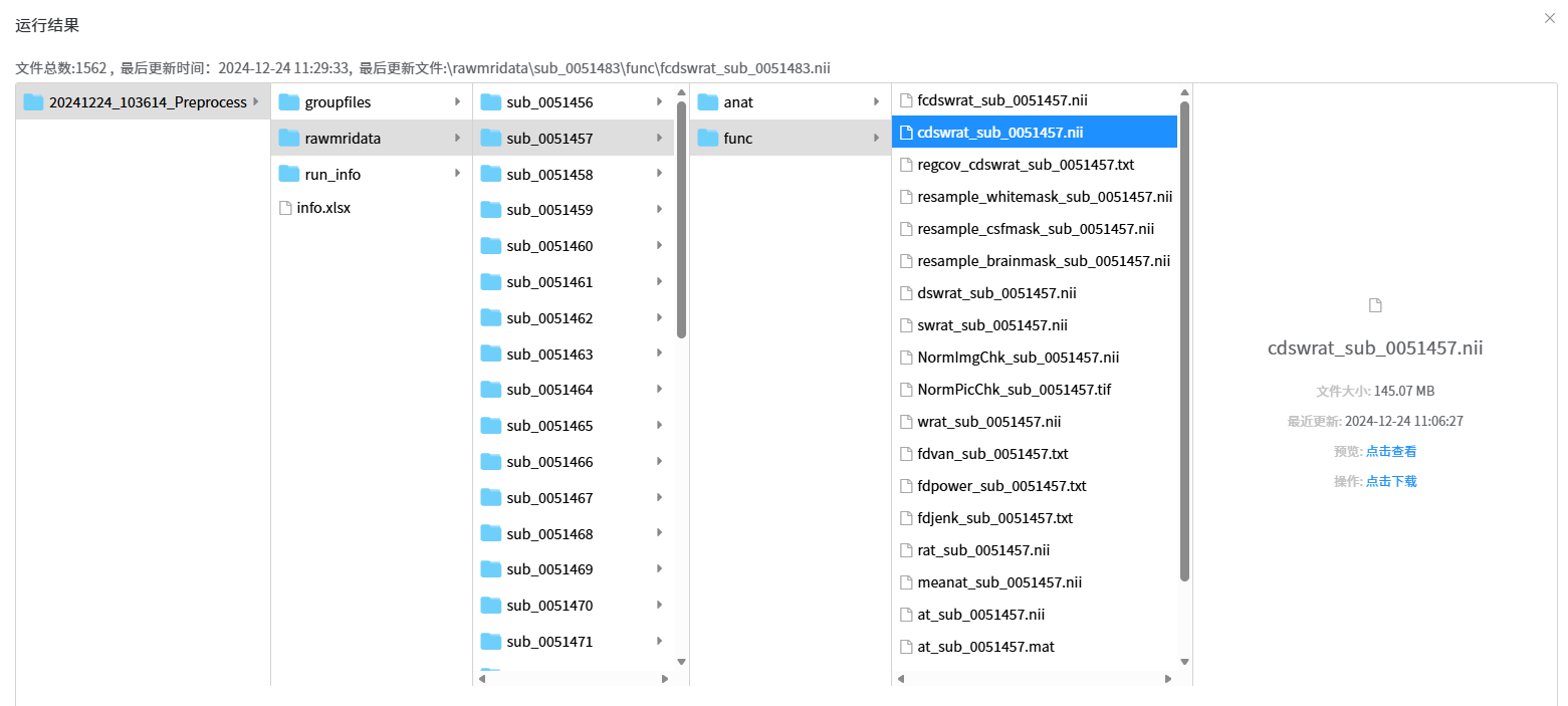 支持一键式白质功能指标计算,包括白质预处理,功能图像白质区域提取,去除深部核团。白质功能信号研究为脑卒中、脑肿瘤、神经退行性疾病及精神类疾病的机制研究、术前精准规划、疗效评估提供了全新的影像学视角。
