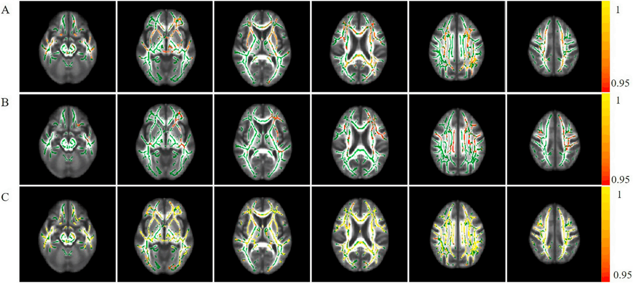 核心算法包括标准化的DTI数据预处理、基于体素的全脑分析(VBA)、基于白质骨架的跨被试统计分析(TBSS),以及确定性与概率性纤维追踪技术,用于构建个体化结构连接网络。
