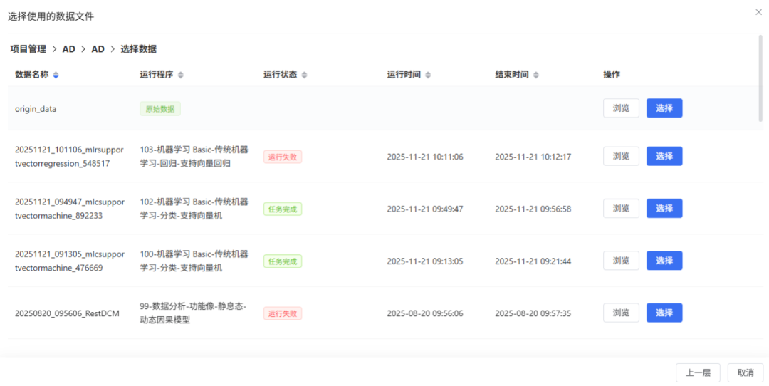 任务流程关联:质控任务可在脑影像数据库的项目管理页面中进行统计,关联该数据集下任务流程。
