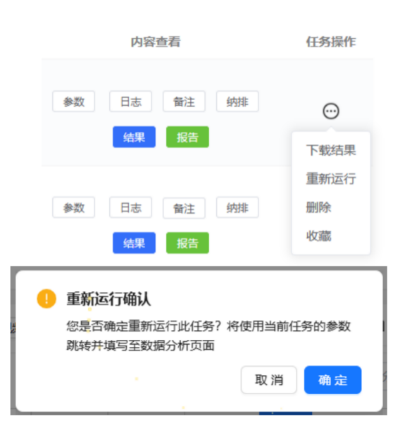 直接复用或编辑已有参数,一键重新执行。