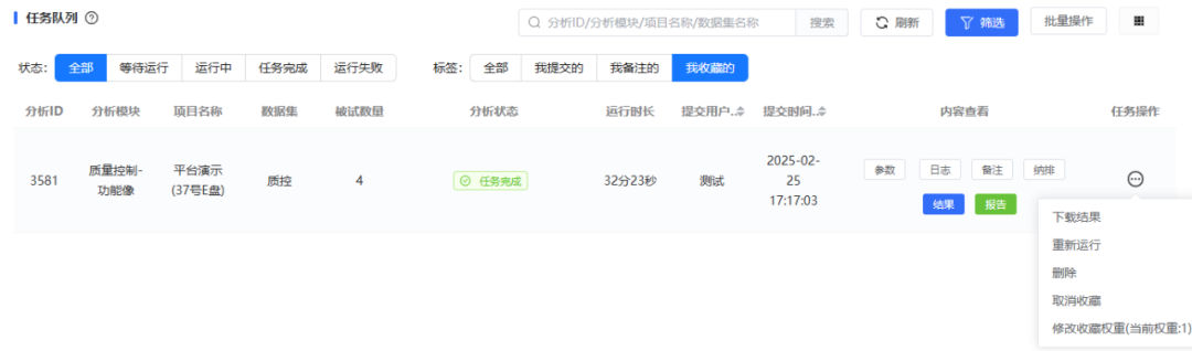 将常用任务加入收藏,便于快速调取;支持设置收藏权重,筛选重要任务。