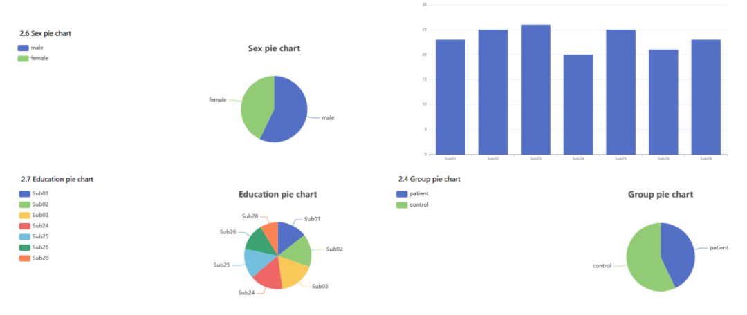3. 人口学信息报告:自动生成年龄、受教育程度等人口学统计图表,为脑影像科研提供直观的被试人群特征总览。