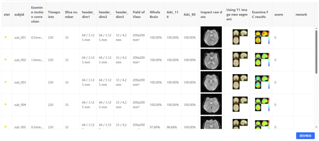 推送至脑影像数据库:一键将质量控制结果推送至脑影像数据库中对应的数据集详情页中,相关记录可追溯。