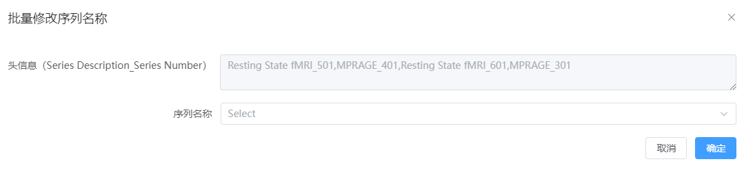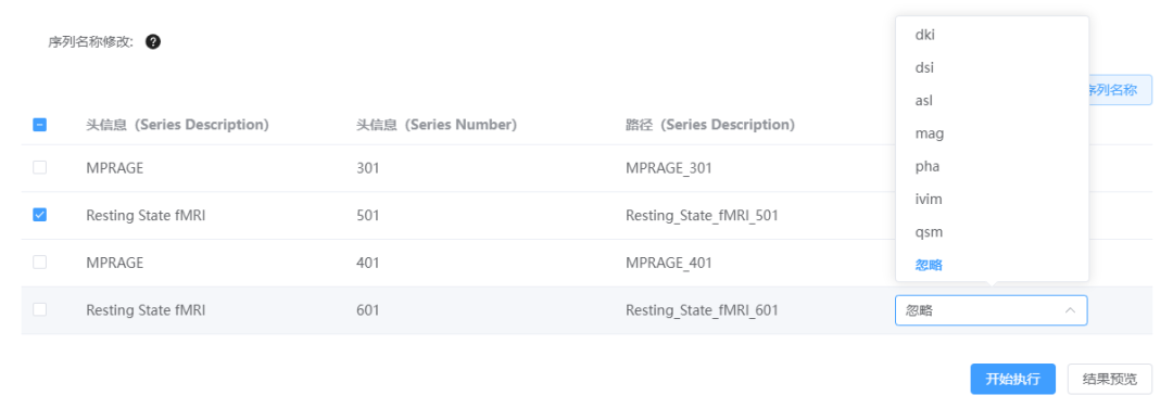 3. 序列批量重命名:读取原始数据序列名称,批量勾选修改并生成更改记录表,确保操作可对应。