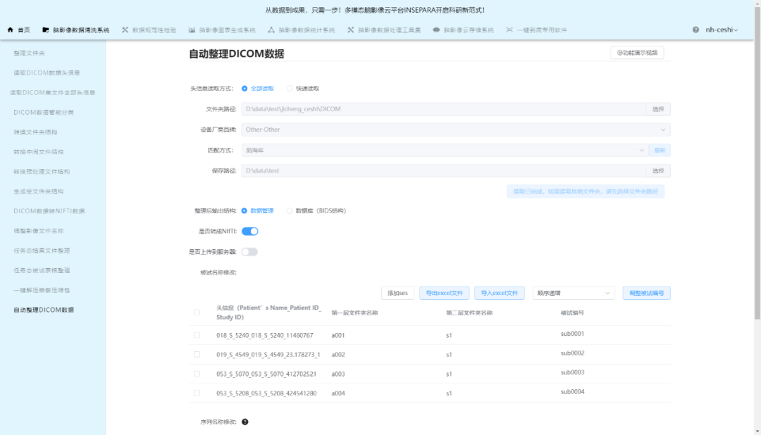 3. 影像文件格式转化:标准化转换工具,支持DICOM格式转化为NIfTI格式,打通临床影像到科研分析的路径。