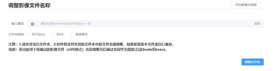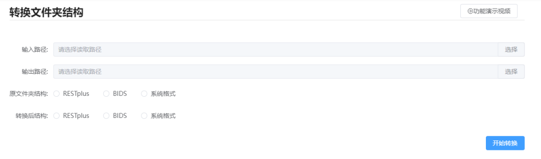 2. 文件夹结构转换:多种文件夹结构批量互转,在团队协作中统一目录标准;可对接开源软件做后续数据分析;可选分析平台格式、BIDS格式或RESTplus格式。