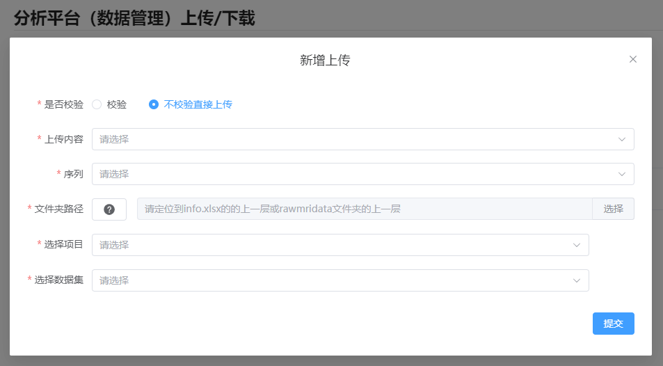 2. 分析平台上传与下载:与分析平台及多模态数据库双向对接,支持本地整理结果一键上传,或下载标准数据集回传本地处理。