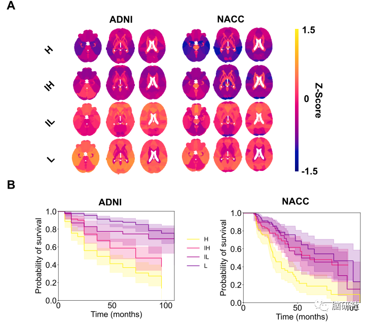 在该研究中,研究人员开发了将神经网络与生存分析相结合的模型,进而预测从轻度认知障碍到阿尔茨海默病的进展。然后,研究将模型预测与生物学证据联系起来,用来证实阿尔茨海默病的诊断。研究结果表明,与AD相关的大脑区域,如内侧颞叶是预测转化风险的最重要的大脑区域之一,这也确保了研究的发现与既定的医学知识是保持一致的。研究人员表示,该研究通过使用常规信息(如结构功能磁共振成像,sMRI)来量化从MCI到AD的转化风险,这代表了神经学和计算机科学交叉领域的创新,并强调了模型与生物学证据的一致性。本研究中,研究人员使用了一种广泛应用的非侵入性技术,即将深度神经网络与结构MRI结合起来。此外,研究将最先进的深度学习方法结合SHAP(SHapley Additive exPlanations),以增加机器学习模型的透明度和可解释性,研究人员因此可以识别出对预测疾病风险来说特别重要的区域。Romano, M. F., Zhou, X., Balachandra, A. R.,